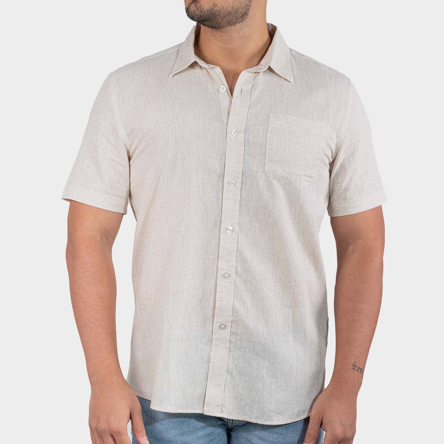 Camisa casual manga corta sin bolsillo para hombre