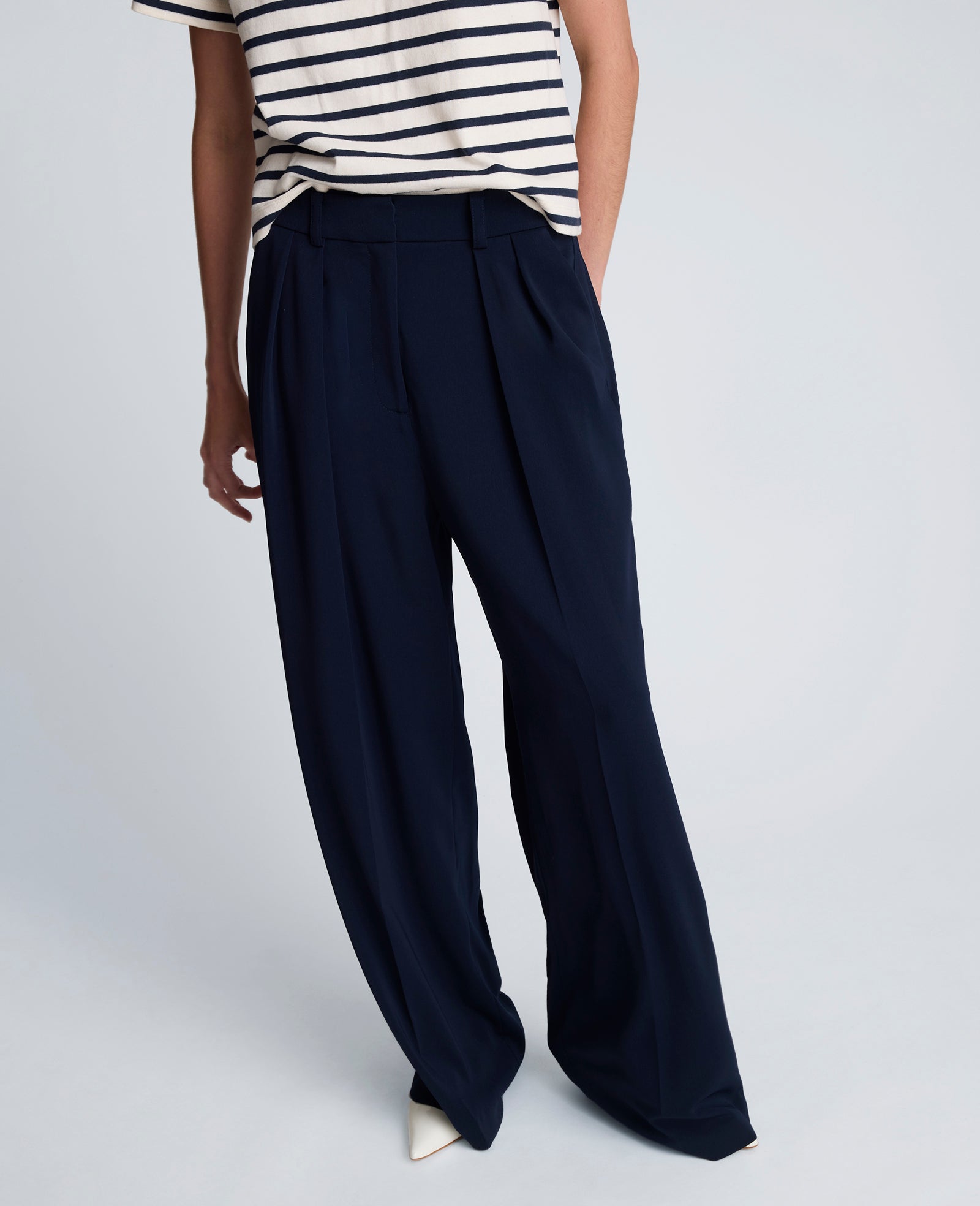 Pantalón de tiro alto con pliegues dobles y pierna ancha para mujer