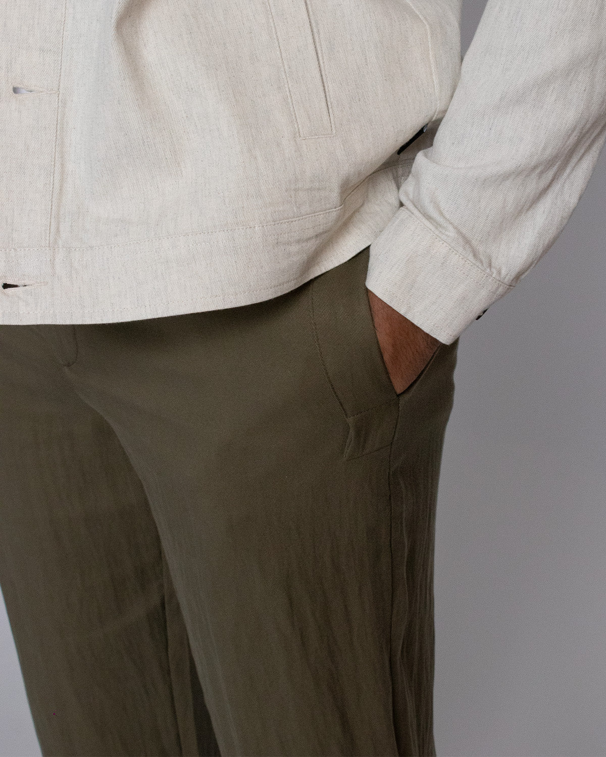 - Composición: 64% Lyocell / 29% Viscosa / 7% Nylon, donde el lyocell aporta suavidad, frescura y una sensación sedosa, la viscosa mejora la caída y brinda ligereza, y el nylon añade resistencia y durabilidad para un mejor desempeño de la prenda.