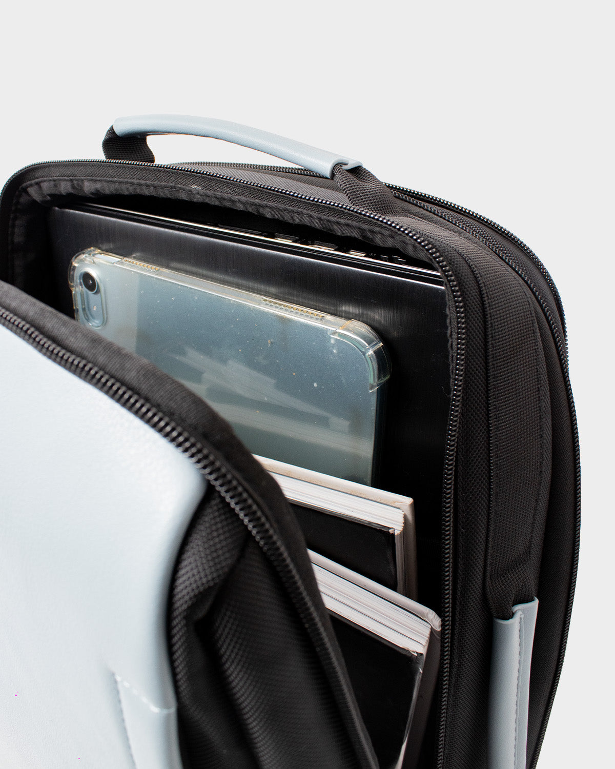 Equipada con Adjustable, que permite un ajuste personalizado para adaptarse a las necesidades de cada usuario; Social-Storage, un sistema de organización práctico e inteligente que facilita mantener tus pertenencias seguras y accesibles; y Super Soft Comfort, una tecnología desarrollada para brindar una sensación superior de suavidad y confort en correas y respaldo, asegurando comodidad prolongada y una experiencia de uso más placentera durante todo el día.